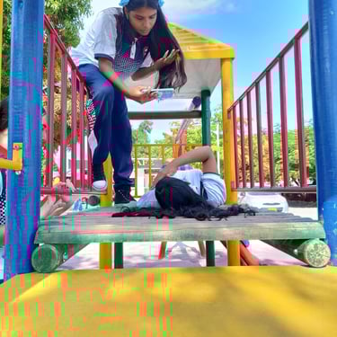 Tomé la foto en el parque porque me pareció un lugar bonito y tranquilo, con muchos árboles y sillas alrededor. Quise capturar el momento con mis compañeros y mostrar la naturaleza del lugar.