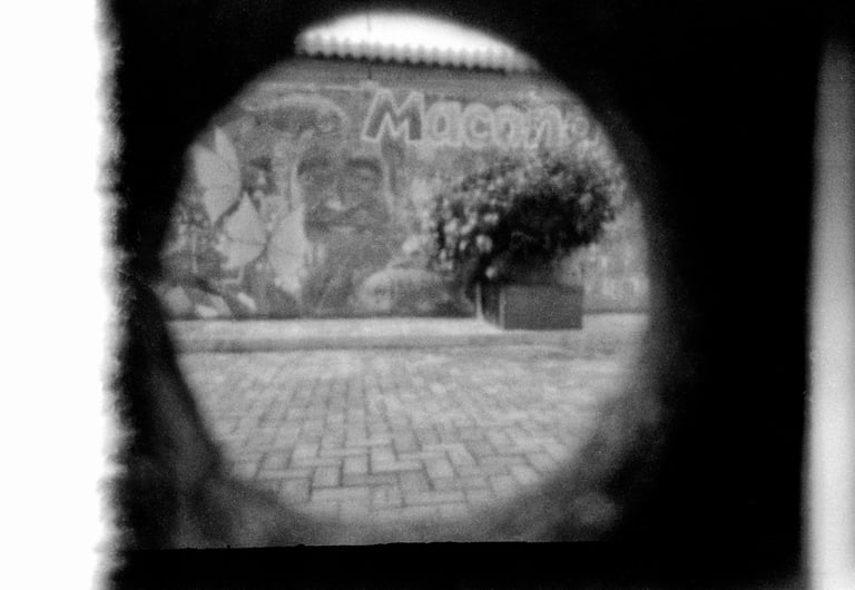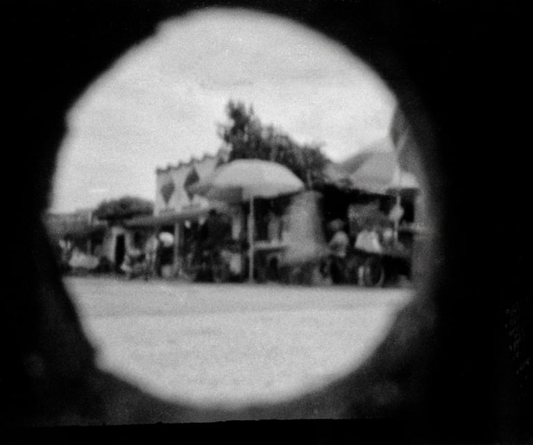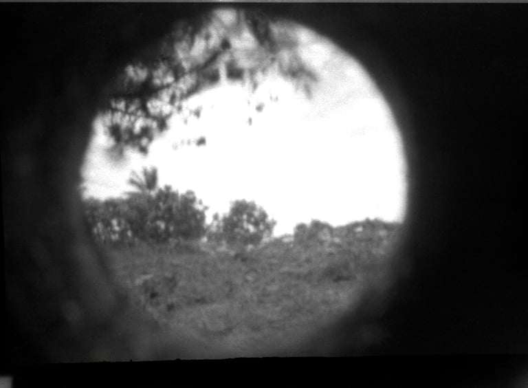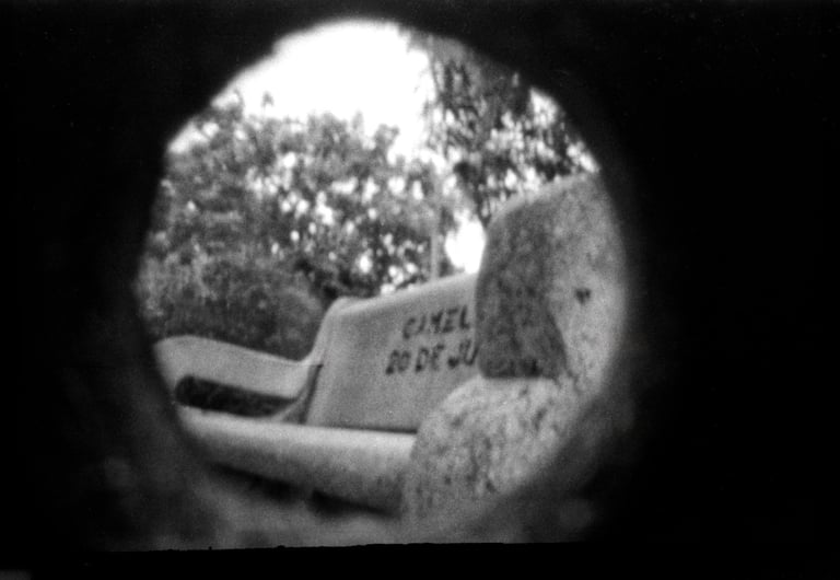 Estas imágenes, han sido obtenidas por los participantes del taller-laboratorio en Aracataca utilizando una cámara estenopeica, son el resultado de un ejercicio de reflexión visual en torno a las preguntas ¿Quién soy? y ¿En dónde estoy?. Fueron realizadas sobre película negativa blanco y negro, reveladas y posteriormente digitalizadas, cada fotografía representa una mirada personal sobre la identidad y el territorio.